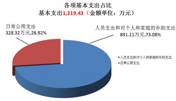 2017年度用于保障機構正常運轉的日常支出1,219.43萬元。與上年對比,減少了15.66,主要原因是2017年度稅收支出下降。包括基本工資、津貼補貼、對個人和家庭的補助等人員經(jīng)費支出占基本支出的73.08%;辦公費、印刷費、水電費、辦公設備購置等日常公用經(jīng)費占基本支出的26.92%。