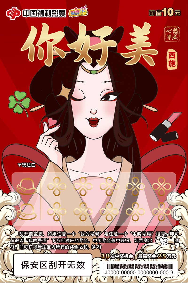 “心想事成”使用上海美術(shù)電影制片廠經(jīng)典風(fēng)格,將中國古代歷史人物以詼諧、幽默的方式重現(xiàn)。每張畫面顯要位置均有三字祝福語:以歷史人物作代言人,針對(duì)人們不同愿望,用最直接的口吻傳遞給彩民美好的祝愿。游戲采用對(duì)數(shù)字玩法,玩法容易理解且具有趣味性,適合各類彩民購買。