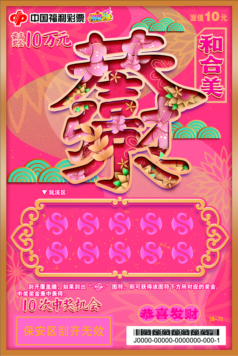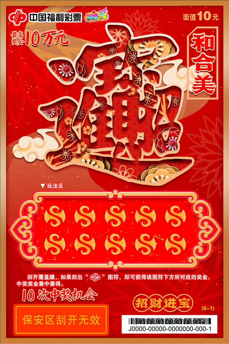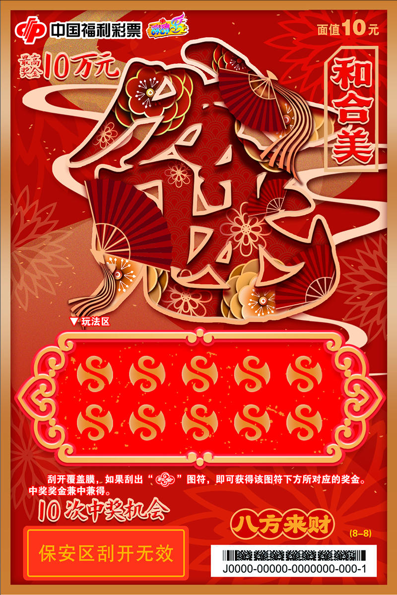 刮開覆蓋膜,如果刮出“和合”圖符,即可獲得該圖符下方所對(duì)應(yīng)的獎(jiǎng)金。中獎(jiǎng)獎(jiǎng)金兼中兼得。